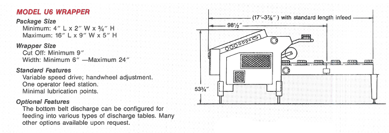 We carry an inventory of wrapping Machines that can be rebuilt as soon as we are advised of application specifications: (direction of feed; power supply, etc.)